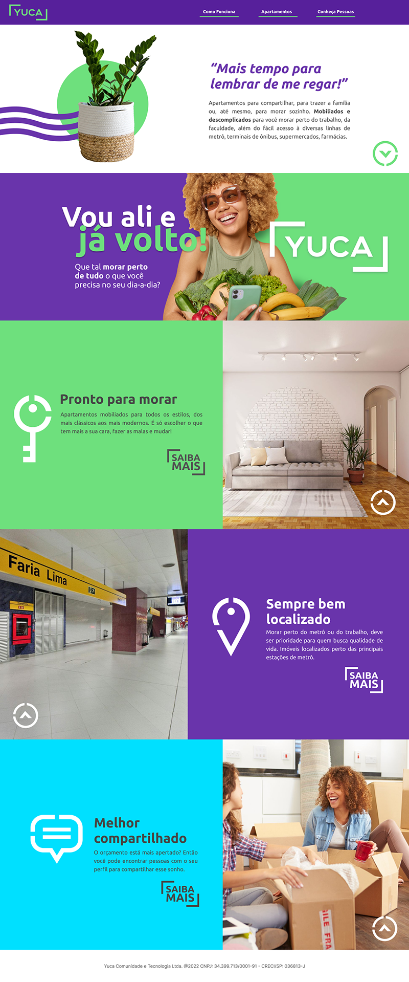 O grande diferencial da YUCA são as localizações dos imóveis, perto de centros comerciais, as principais avenidas, linhas de metrô e terminais de ônibus próximos.